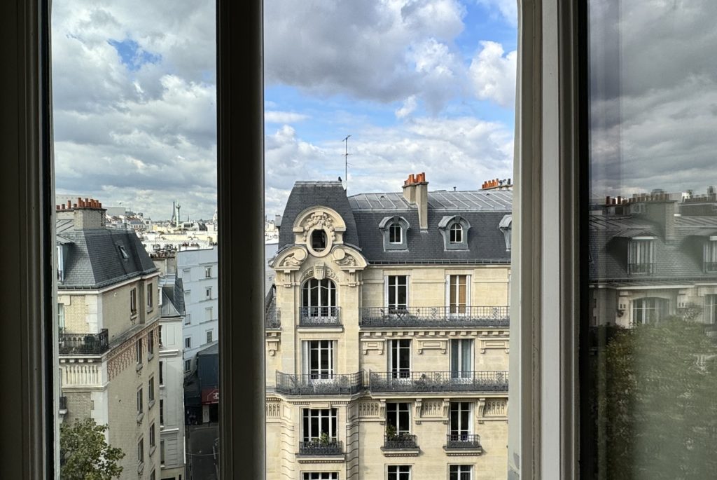 L'appartement est situé au 7e étage avec ascenseur d'un immeuble haussmannien.